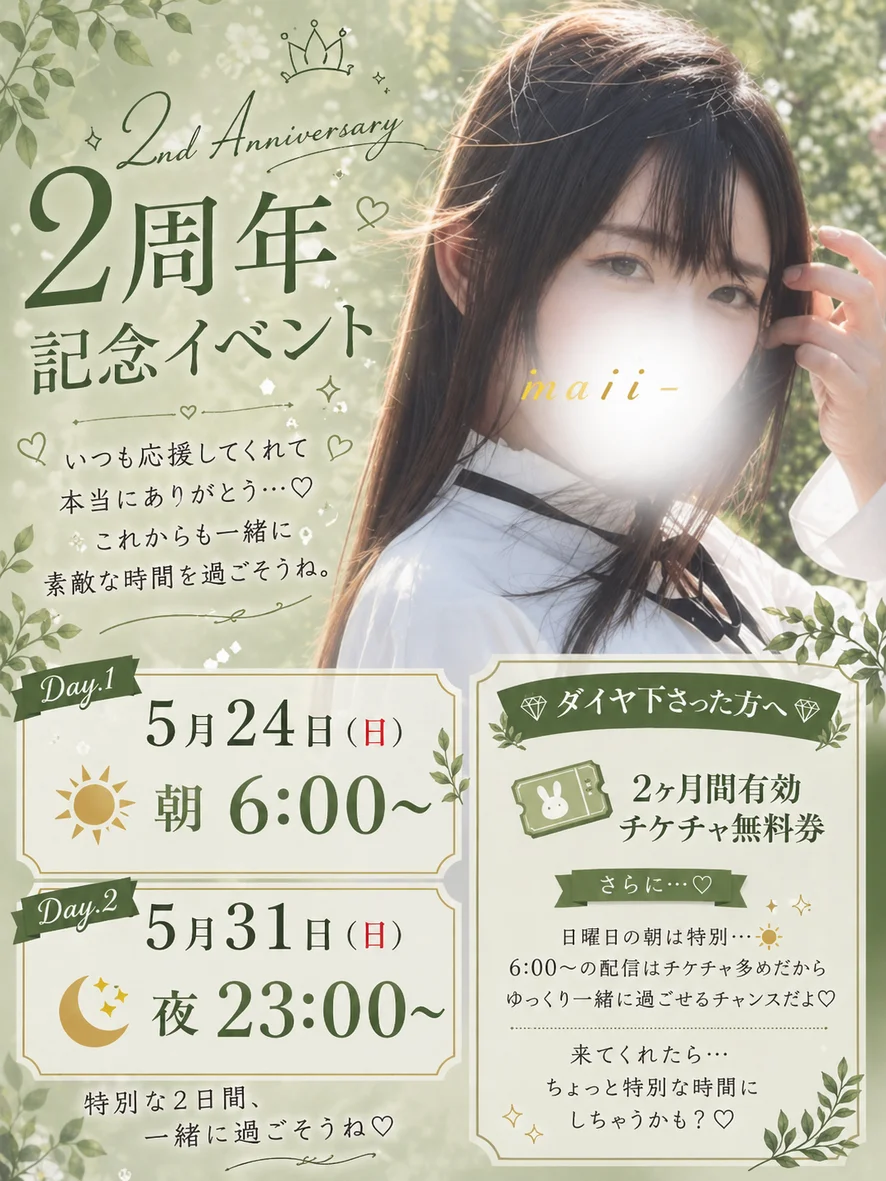 4/9 更新 少し疲れてしまって… 気持ちが追いつかなくなってきたので、 しばらくお休みをいただきます。 いつも来てくれている方、 その日に会いに来てくださった方を優先して、 PMのお返事をさせていただいています。 常連様を大切にしたい気持ちは変わらないのですが、 あまりにも頻繁にメッセージをいただくと、 少し負担に感じてしまうことがあります…。 そのため、来ていただけていない日のPMは お返事ができないことがあります。 「来ていただいた日」は、ちゃんとお返しします。 5月末で2年目になるので、 そこをひとつの区切りとして考えています。 正直、少し限界を感じていて… このまま続けるか悩んでいます。 もし急にいなくなってしまったらごめんね。 その時は、だれとも連絡も取れなくなります。 ここまで関わってくれて、 本当にありがとう。